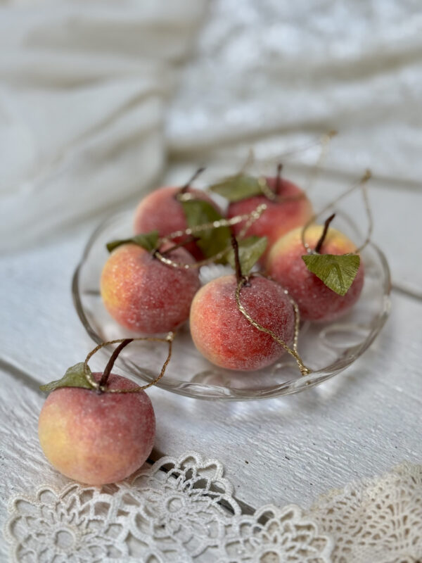 Håndlavet æble ophæng af vatæble og crepepapir.