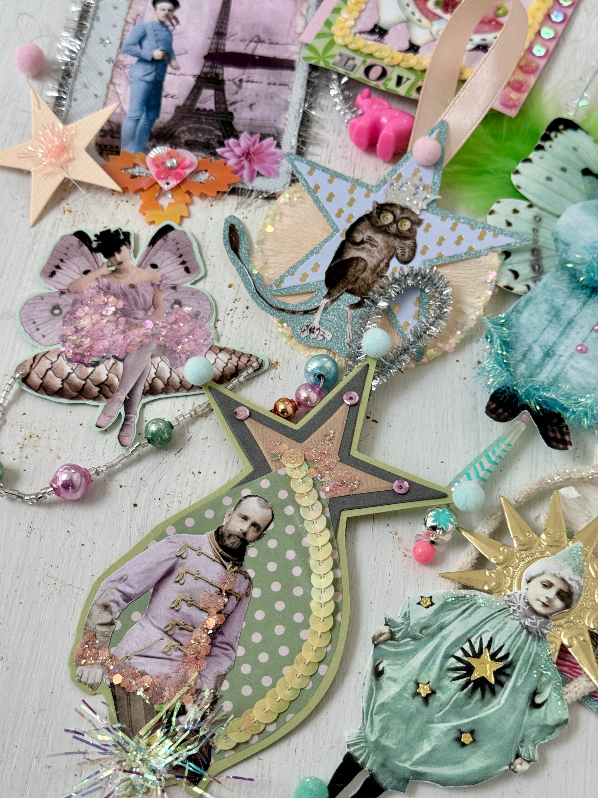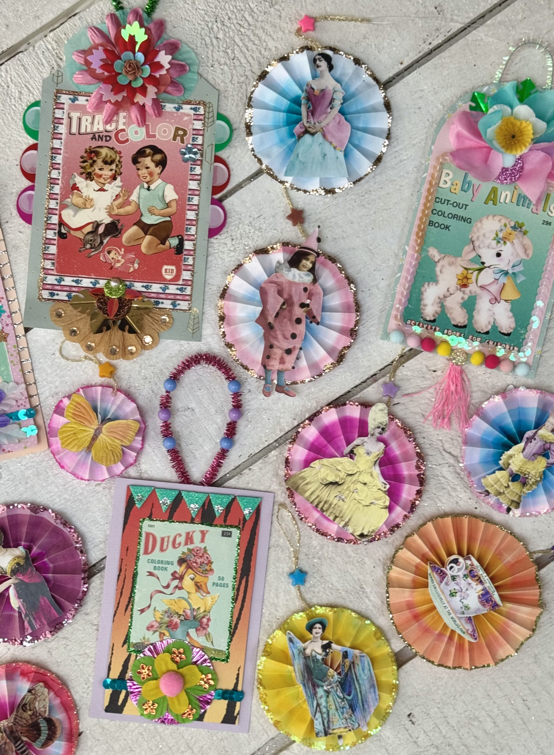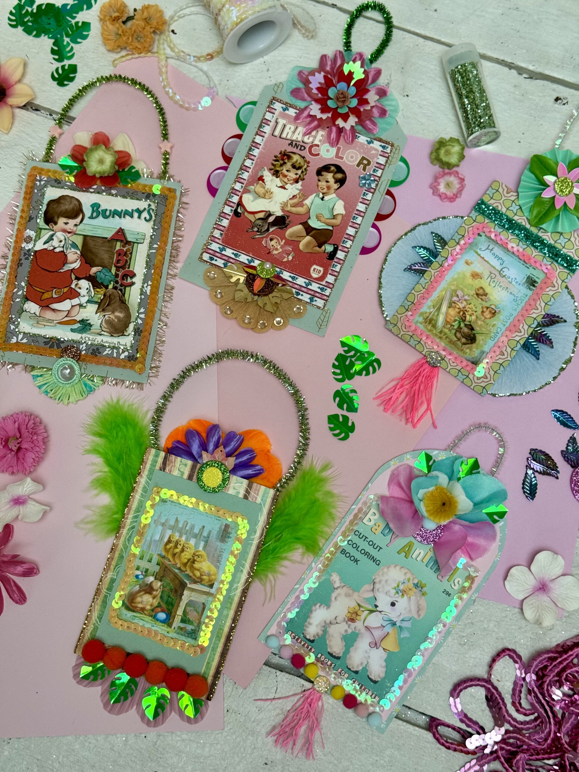 Dette er en af de workshops, hvor der er stor frihed i forhold til hvad du vil lave, men også hvilke materialer du har lyst til at bruge. Der er også billeder til kitschede påskeophæng.